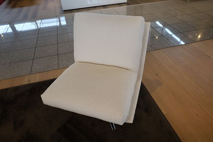 1 drehbar Sessel, Bezug Stoff wollweiss, Fuss Pure Aluminium poliert , ohne Armlehnen statt 2.715,-