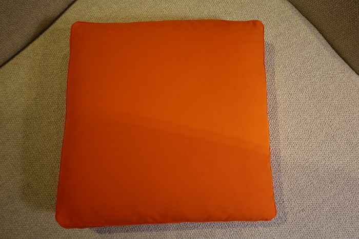 2 Kissen, Maße: 45 x 45 cm, Bezug Stoff Fiji Mandarin 13 F 232, je statt 286,- Ausstellungsstück zum Sonderpreis reduziert je auf 149,-