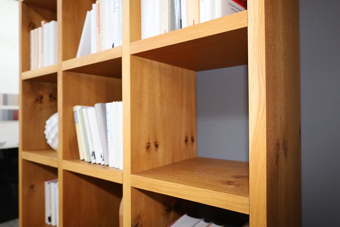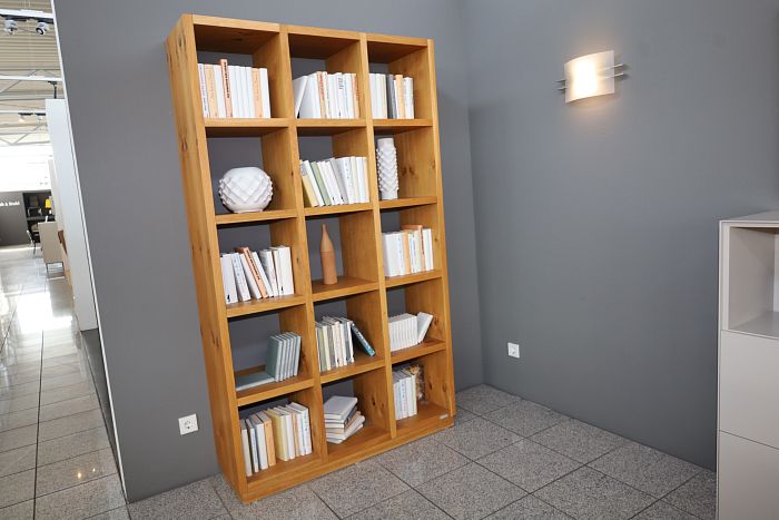Regal, Maße (BxHxT) 120 x 207 x 36 cm, Eiche massiv geölt mit Knoten, ohne Rückwand, statt 3.510,- Ausstellungsstück zum Sonderpreis reduziert auf 2.490,-
