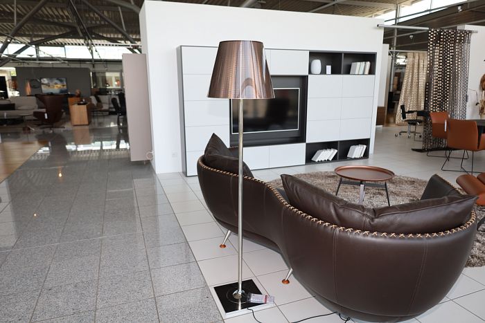 Stehleuchte Ø 39,5 cm, Höhe: 163 cm, 1x max 150 Watt, Chrom / Schirm bronzefarbig, statt 990,- Ausstellungsstück zum Sonderpreis reduziert auf 790,-