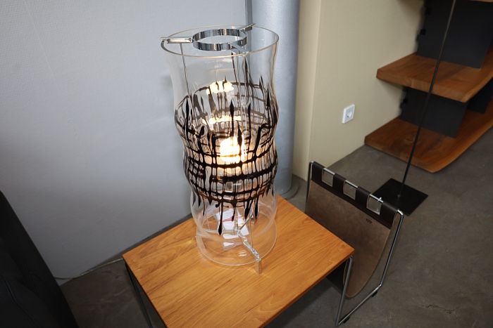 Tischleuchte, Chrom, schwarzes Kristallglas, Fassung E27 statt 713,- Ausstellungsstück zum Sonderpreis reduziert auf 387,-