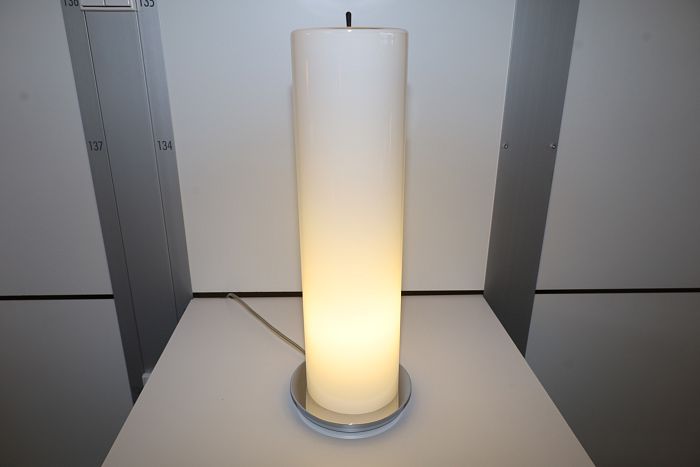 Tischleuchte, Maße: H: 46 cm, Leuchtkörper aus mundgeblasenem, opalen Triplexglas, Fassung E27 Sockel, statt 398,- Ausstellungsstück zum Sonderpreis reduziert auf 249,-