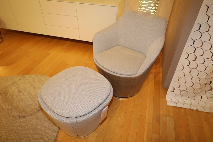 Sessel mit Hocker, Bezug Leder 491 beige-braun / Stoff 12027 Opera ecru-taupe, Drehteller mit Kunststoffgleiter, komplett statt 5.412,-