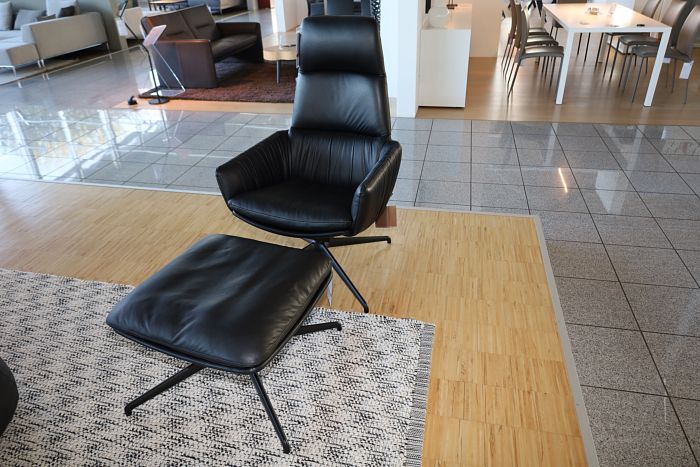 Sessel mit Hocker FAYE, Bezug Leder Sauvage schwarz 8105, Gestell 4-Sterne Fuss mit Wippmechanik, Farbe schwarz M02, komplett statt 4.412,-