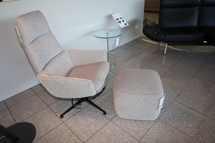 Sessel mit Hocker auf Rollen, Bezug Stoff ROHI Stoff SERA pepper 2804, Gestell 4-Sterne Fuss mit Wippmechanik, Farbe schwarz M02, komplett statt 3.322,- Ausstellungsstück zum Sonderpreis reduziert auf 2.599,-
