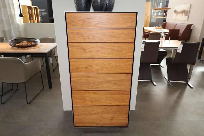 Kommode, Maße: (BxHxT) 64,8 x 138,5 x 46,3 cm, Nussbaum geölt, Rahmen Effekt Titan, mit 7 Schubladen, statt 7.125,-