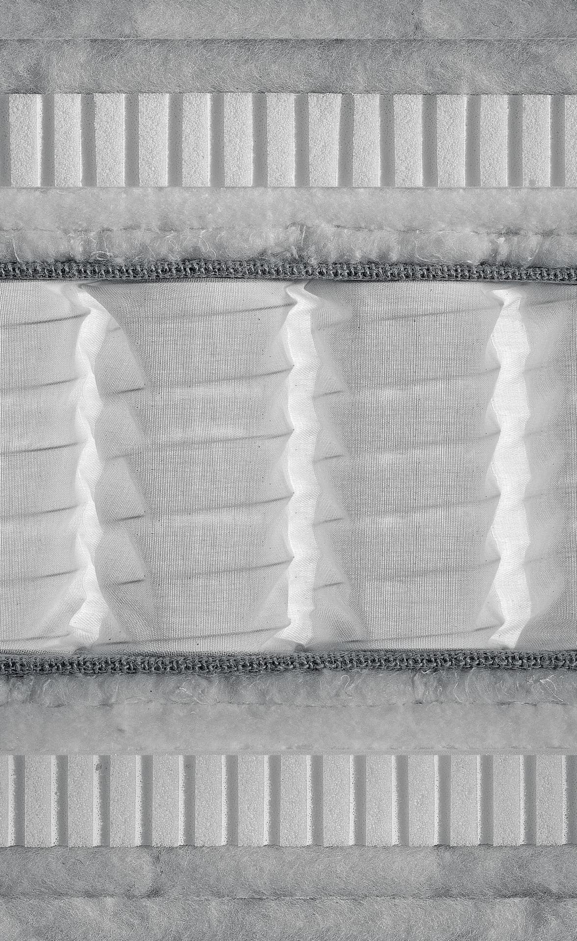 FederungIntegral-Taschenfederkern mit fein differenzierter Federkraft in Matratzen-Längsrichtung ergibt einen fließenden Kraftverlauf für eine hervorragende Körperunterstützung.