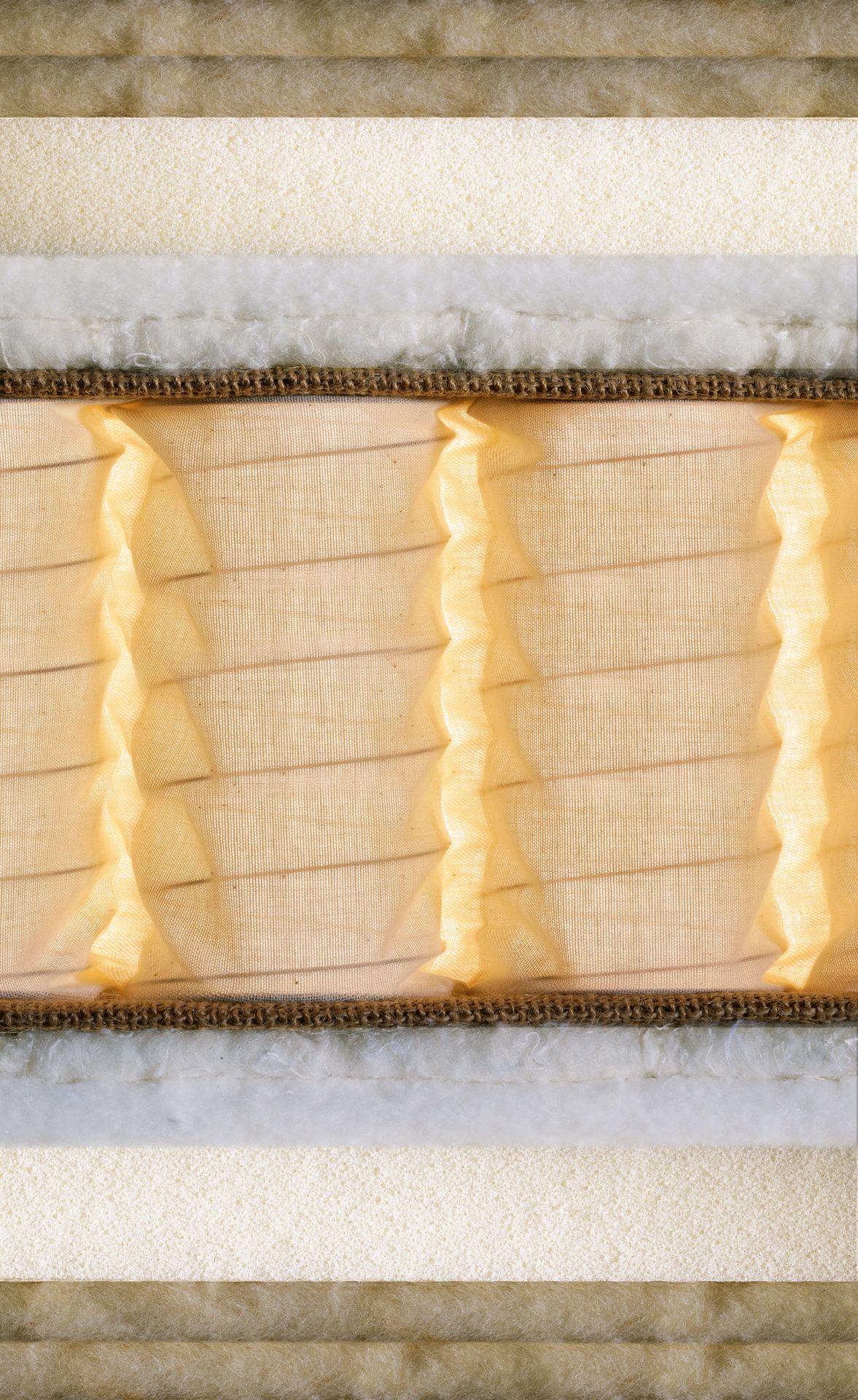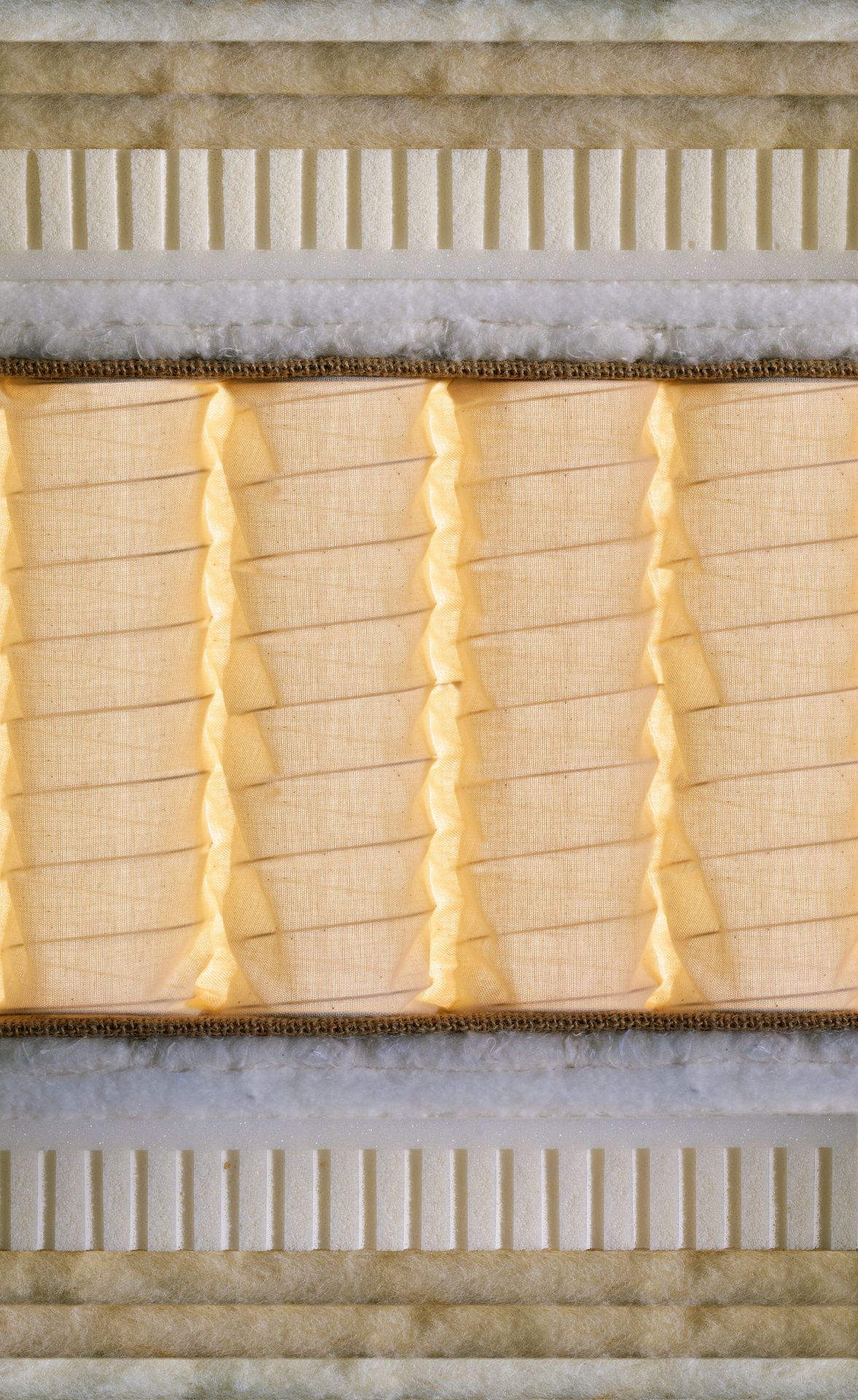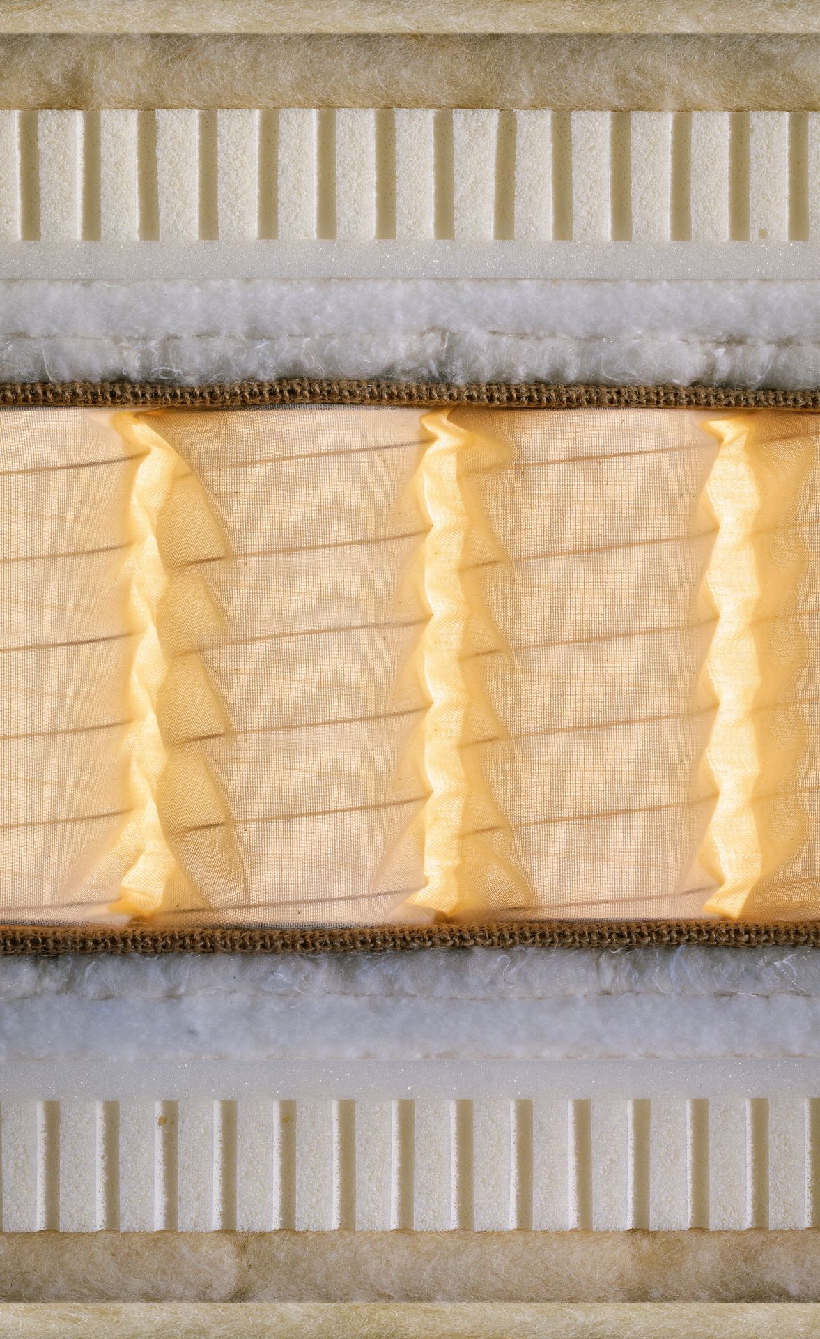 Sprungkraft und Dynamik zeichnen diese Matratze mit elektrothermisch vergüteten Federn aus. Traditionellen Quastenheftung und jede Menge handwerkliches Wissen sind hier zu finden.