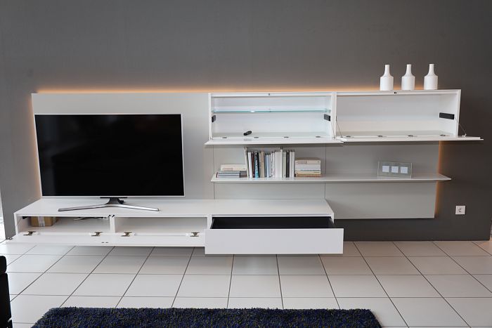 Wohnkombination B 362 cm, Hochglanz Lack weiss, mit Infrarotrepeater, statt 18.463,-