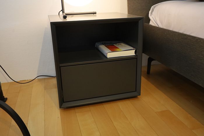 1x Nachttisch Maße (BxHxT) 40 x 38,4 x 35 cm, Lack matt graphit, 1 Schub unten & 1x Nachttisch Maße (BxHxT) 60 x 38,4 x 35 cm, Lack matt graphit, 1 Schub unten, komplett statt 1.621,-