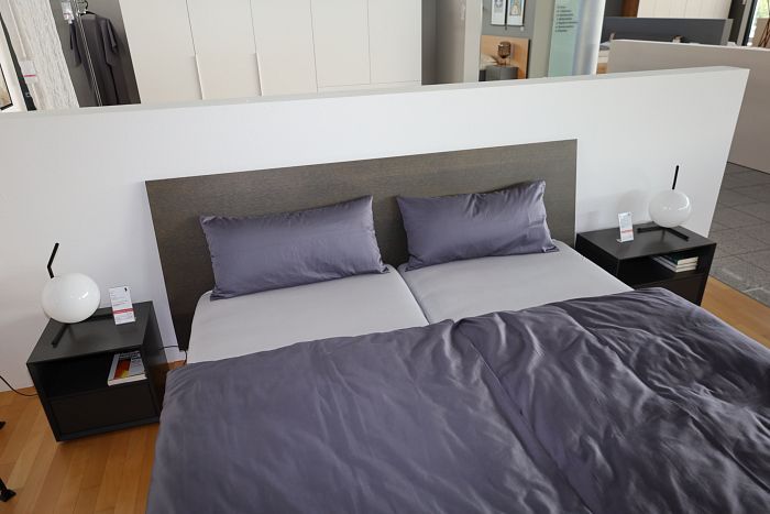 Bettanlage, Maße: Gesamtbreite: 400 cm / Höhe: 100 cm, Liegefläche 200 x 200 cm, Eiche matt furniert, Lack matt asphalt, statt 8.597.-