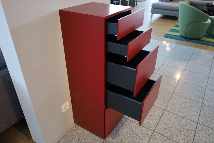 Schubladenkommode (BxHxT) 40 x 117,2 x 39 cm, Lack matt rubin, Schubkastenzargen Melamin schwarz, statt 2.243,-