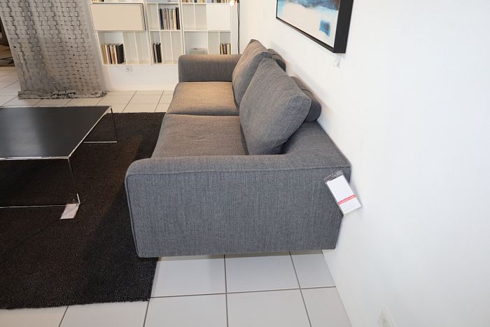 Sofa (BxHxT): 250 x 66 x 95 cm, Stoff 8182 stahlgrau, Einzelfüße verchromt, Kissenfüllung Luftzellestäbchen, inkl. 2x Rückenkissen mit Rolle, statt 7.889,-