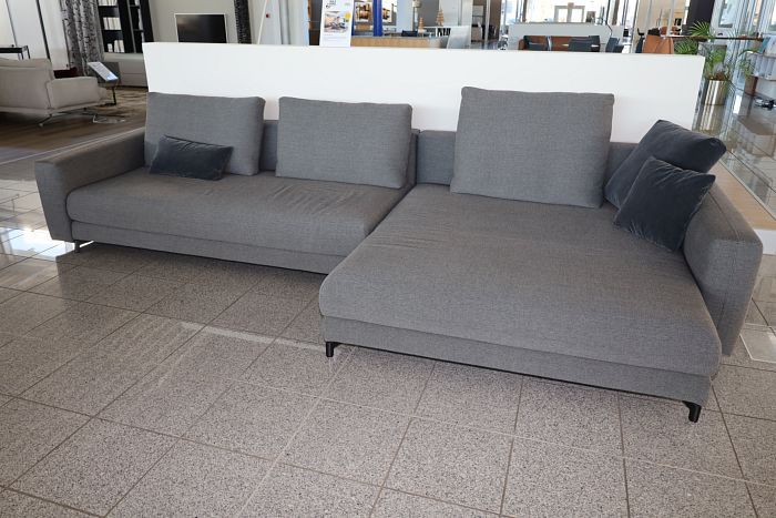 Polstergruppe (BxT): 380 x 173 cm, Sitzhöhe: 41 cm, Sitz Lounge Plus, Stoff 24.255 schiefergrau, Fuß Alu schwarz, inkl. 3 Rückenkissen und 3 Kuschelkissen, statt 12.804,-
