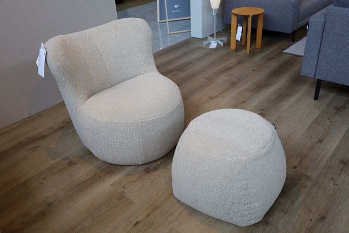 Sessel mit Hocker, Strickstoff weißgrün, statt 1.255,-