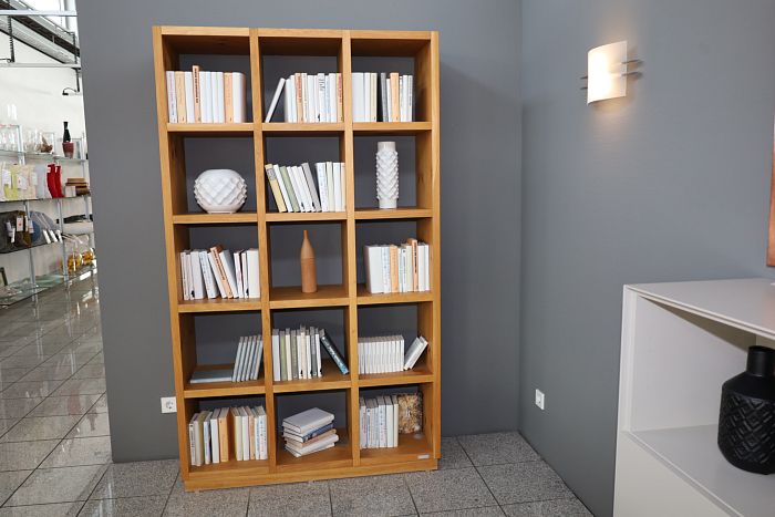Regal, Maße (BxHxT) 120 x 207 x 36 cm, Eiche massiv geölt mit Knoten, ohne Rückwand, statt 3.510,-