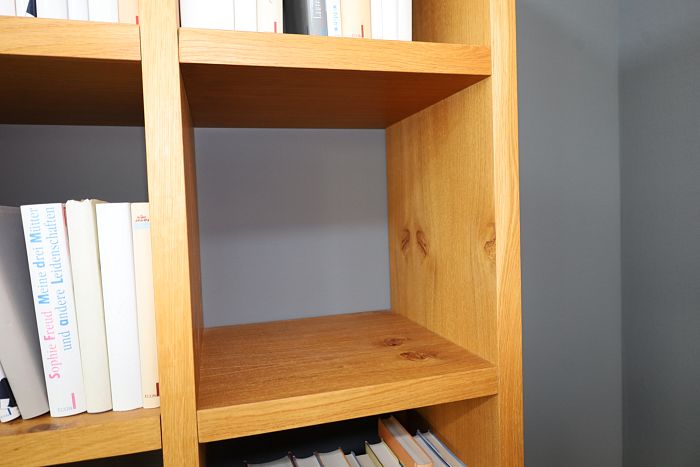 Regal, Maße (BxHxT) 120 x 207 x 36 cm, Eiche massiv geölt mit Knoten, ohne Rückwand, statt 3.510,- Ausstellungsstück zum Sonderpreis reduziert auf 2.490,-