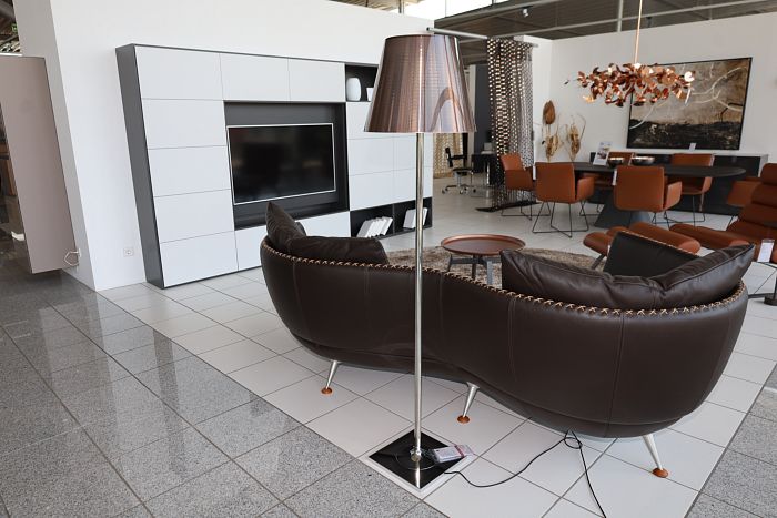 Stehleuchte Ø 39,5 cm, Höhe: 163 cm, 1x max 150 Watt, Chrom / Schirm bronzefarbig, statt 990,- Ausstellungsstück zum Sonderpreis reduziert auf 790,-