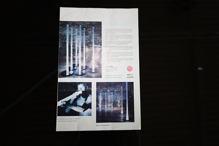 Leuchte, Höhe: 131 cm / Fuss Ø 30 cm, 12V 35 VA mit Dimmer, Fuss Edelstahl, Glas satiniert, Glasfilter rot, gelb, grün, blau, statt 598,- Ausstellungsstück zum Sonderpreis reduziert auf 299,-