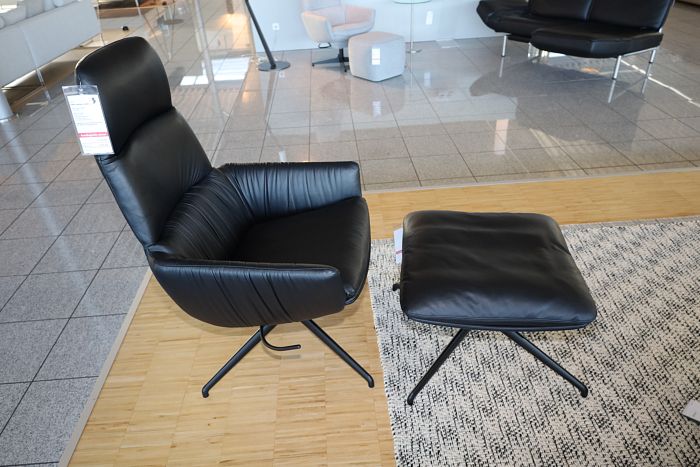 Sessel mit Hocker, Bezug Leder Sauvage schwarz 8105, Gestell 4-Sterne Fuss mit Wippmechanik, Farbe schwarz M02, komplett statt 4.412,- Ausstellungsstück zum Sonderpreis reduziert auf 3.549,-
