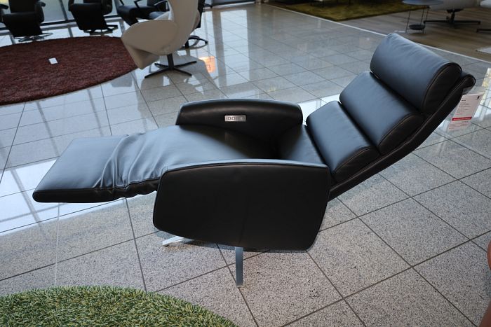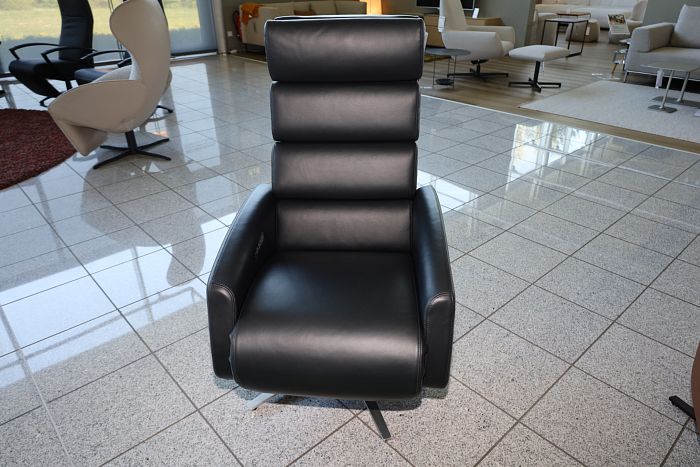Relaxsessel, Motorische Verstellung, mit Akku, Bezug Leder Farbe schwarz 250.10, Sternfuß Edelstahl gebürstet, statt 5.230,-Ausstellungsstück zum Sonderpreis reduziert auf 3.690,-