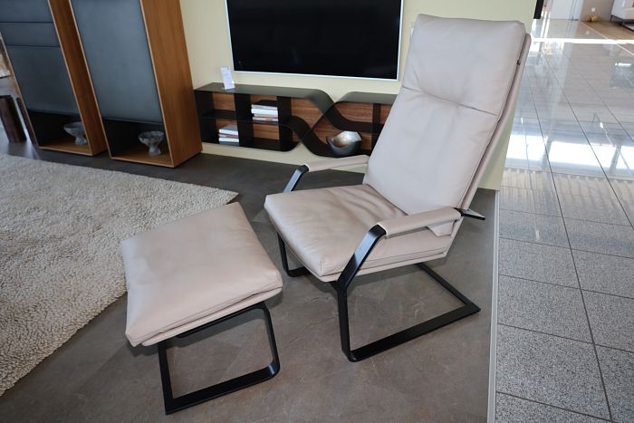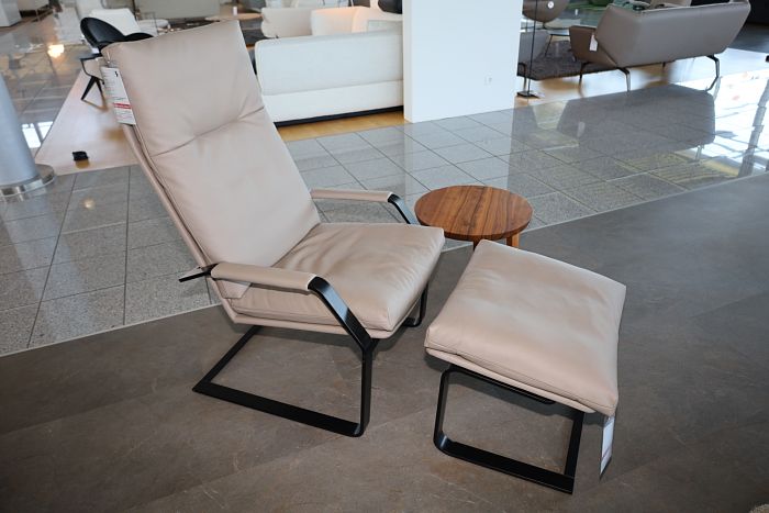 Sessel und Hocker, Bezug Leder Farbe stone 250.400, Gestell Metallausführung schwarz, komplett statt 4.240,- Ausstellungsstück zum Sonderpreis reduziert auf komplett 3.089,-