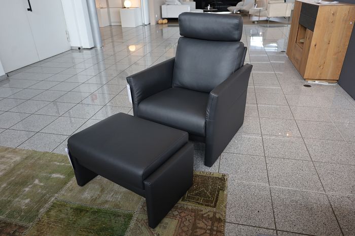 Polstergruppe, bestehend aus: 1x Sofa (BxHxT): 151 x 44/ 78-87 x 89-128 cm, 1x Sofa (BxHxT): 168 x 44/ 78-87 x 89-128 cm, 1x Sessel mit Hocker, Bezug Stoff Sofas Prairie Farbe 2022.89, Bezug Sessel Leder Farbe 43.059 Anthrazit, Armlehen verstellbar, komplett statt 13.007,- Ausstellungsstück zum Sonderpreis reduziert auf komplett 10.319,-