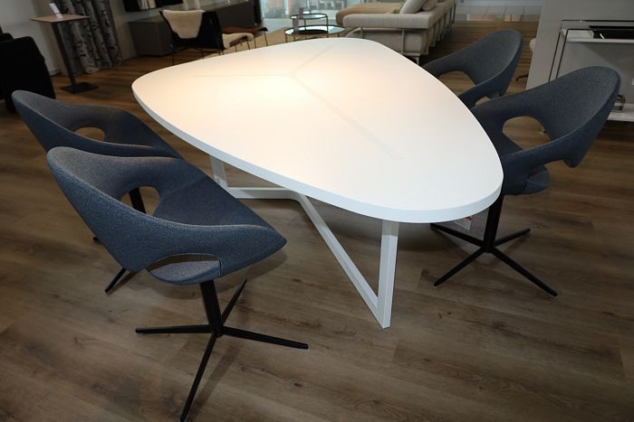 4 Stühle, Untergestell drehbar Kreuzfuss Stahl schwarz lackiert, Bezug Stoff 4MC anthrazit, mit PVC Gleiter, komplett statt 3.388,- Ausstellungsstück zum Sonderpreis reduziert auf 2.360,-