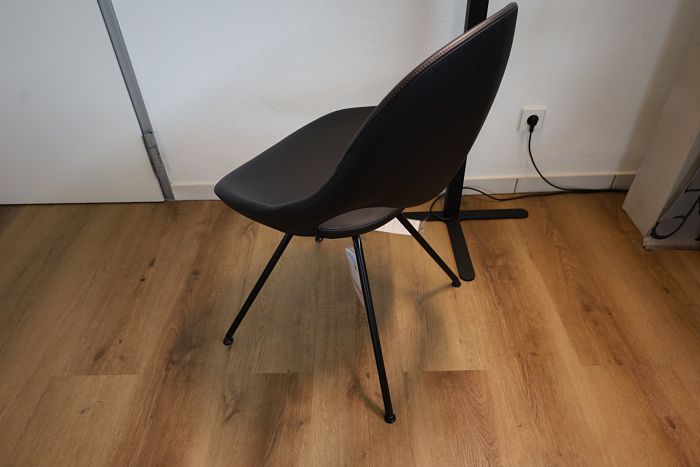 1 Stuhl, Untergestell drehbar Kreuzfuss Stahl schwarz lackiert, Bezug Leder Polo P60 schwarz, mit PVC Gleiter, statt 879- Ausstellungsstück zum Sonderpreis reduziert auf 599,-