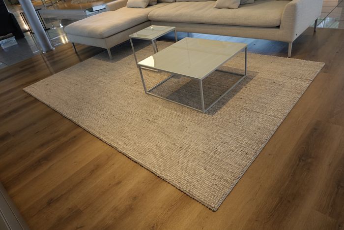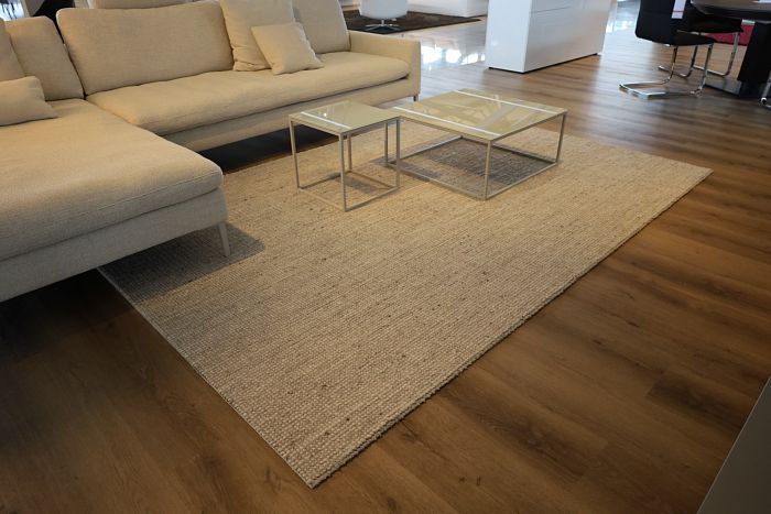 78% reine Schurwolle, 22% PES/Bio Cotten, gewoben, Farbe weiß/hellgrau, Maße: 200 x 300 cm, statt 3.281,- Ausstellungsstück zum Sonderpreis reduziert auf 2.460,-
