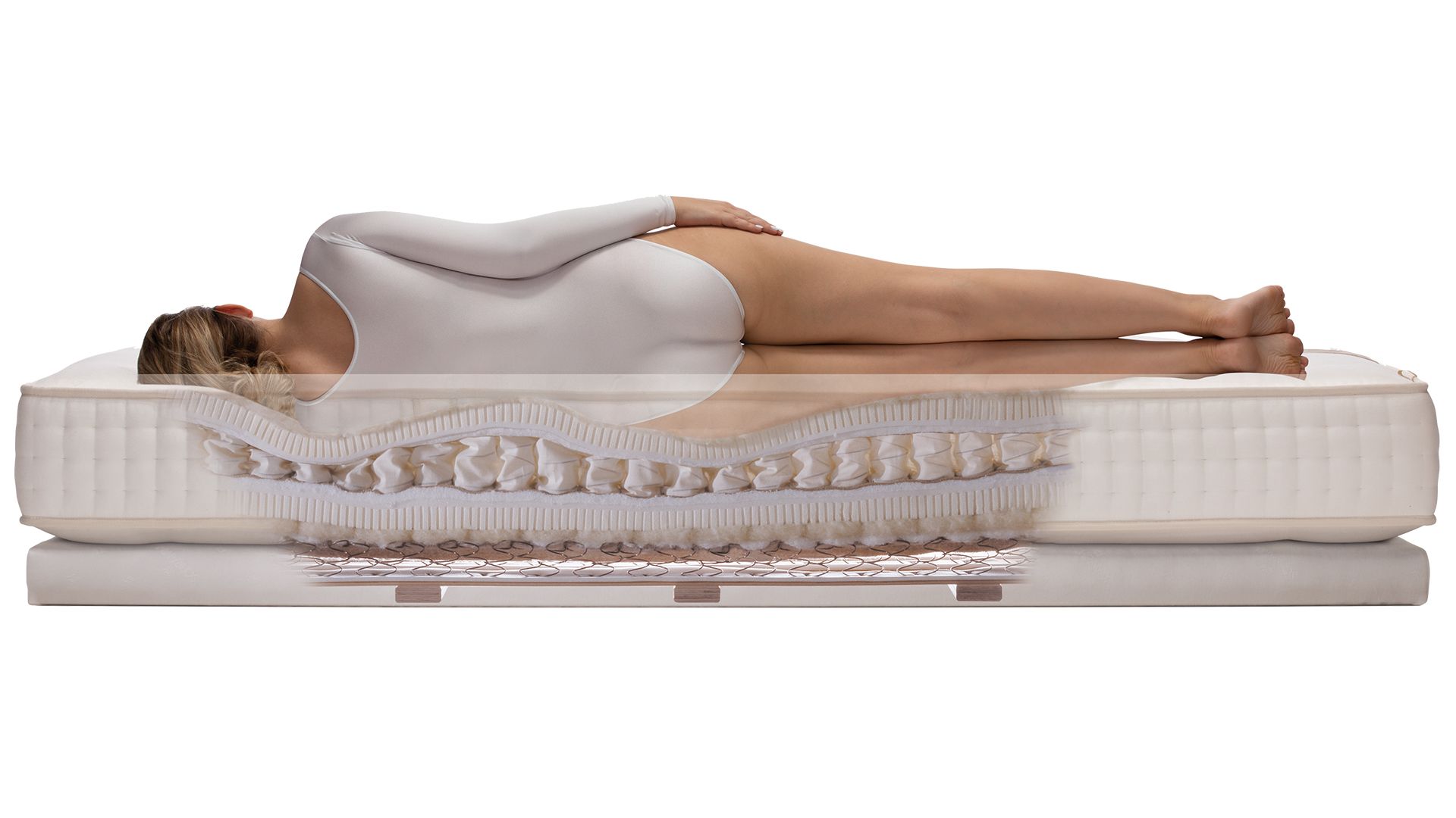 Feine differenzierte Federkräfte gepaart mit einer patentierten Schulteraufnahme machen diese punktelastische Matzratze zu einem Alleskönner, speziell auch für Seitenschläfer.