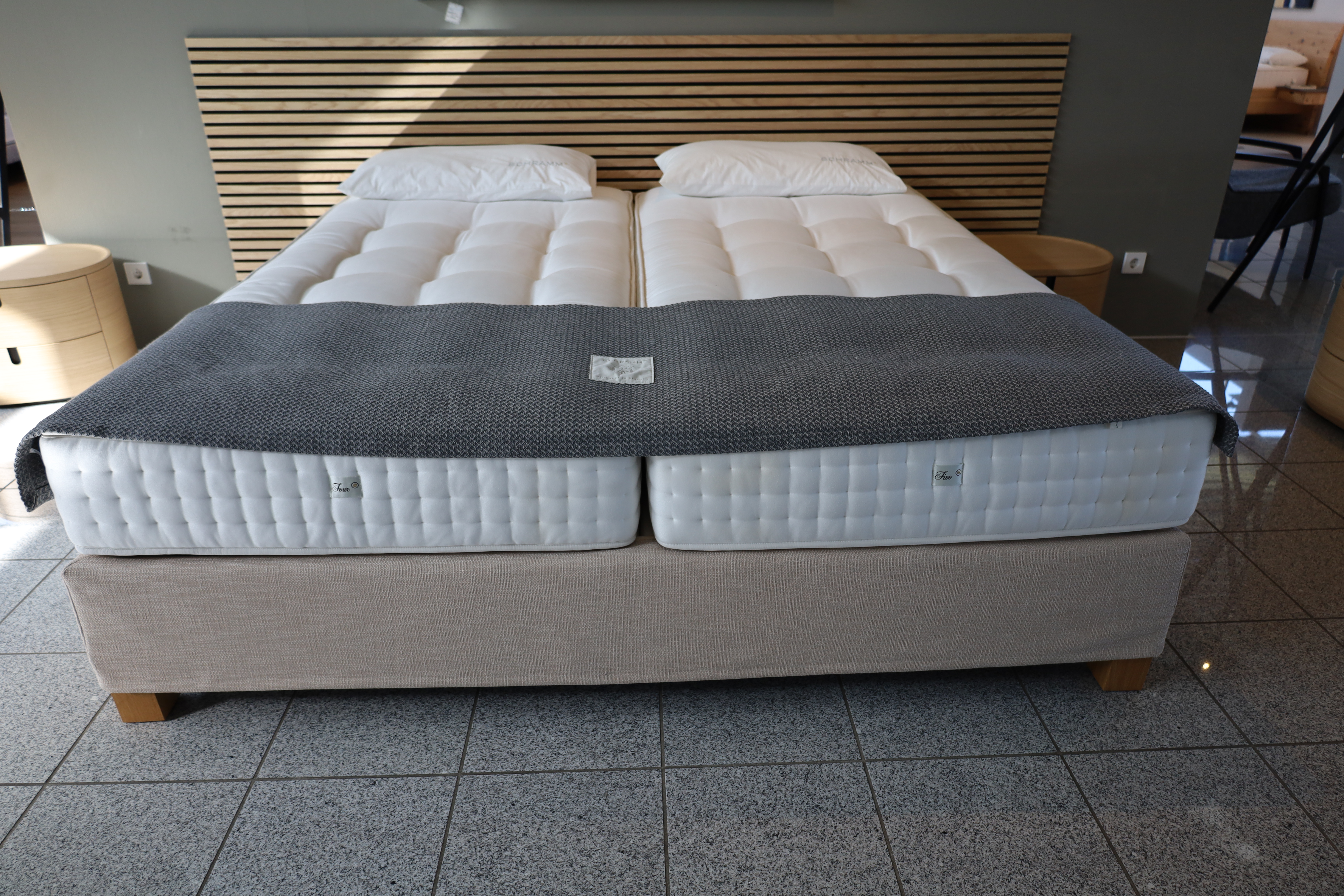 Sprungkraft und Dynamik zeichnen diese Matratze mit elektrothermisch vergüteten Federn aus. Traditionellen Quastenheftung und jede Menge handwerkliches Wissen sind hier zu finden.