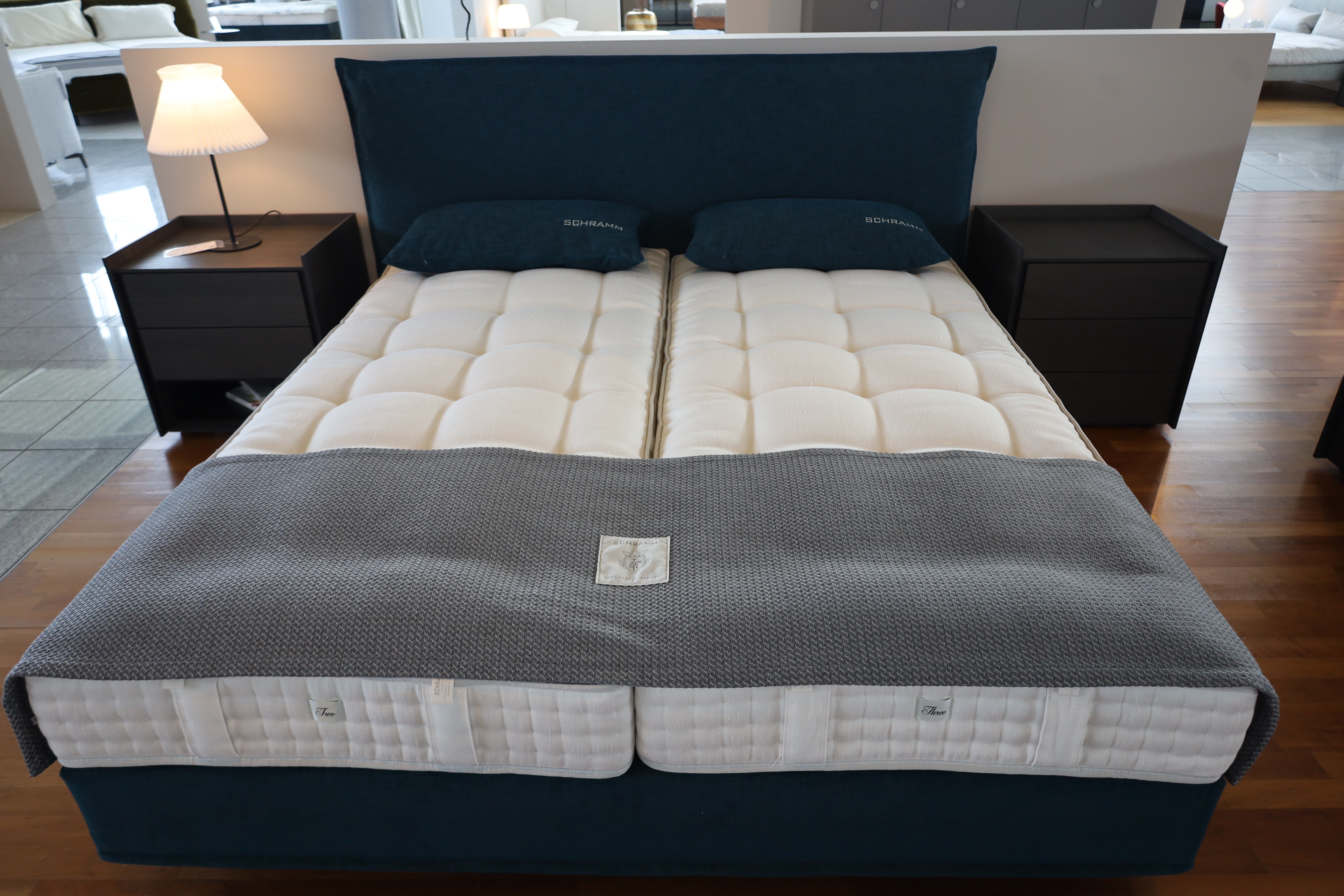 Das bewährte Zwei-Matratzen-System macht die Komposition zum ganzheitlichen Liegekomfort auf höchstem Niveau. Der perfekte Schlafgenuss ergibt sich aus der Symbiose fein auf den Körper angepasster Obermatratzen und der stabil, elastischen Untermatratze.