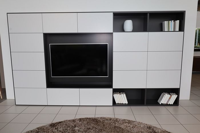 Wohnkombination (BxHxT) 353,2 x195,7x35 cm, Lack matt graphit, Lack matt grau-weiss, statt 12.108,-