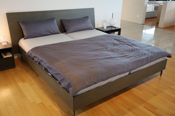 Bett mit Knickkopfteil, Maße: Kopfteilbreite: 205,6 cm, Liegefläche 180 x 200 cm, Eiche silbergrau, Füsse Lack graphit, statt 4.299,-