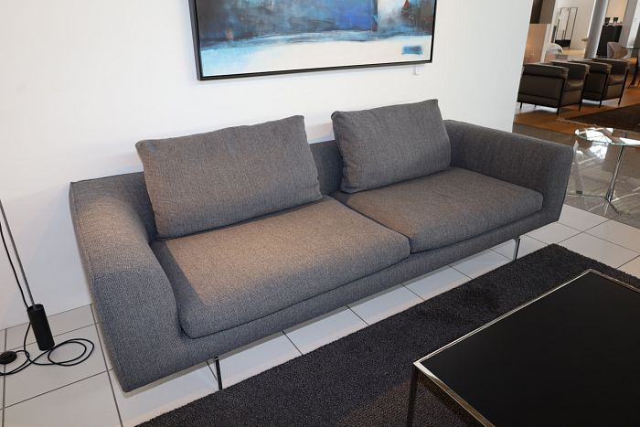 Sofa (BxHxT): 250 x 66 x 95 cm, Stoff 8182 stahlgrau, Einzelfüße verchromt, Kissenfüllung Luftzellestäbchen, inkl. 2x Rückenkissen mit Rolle, statt 7.889,-
