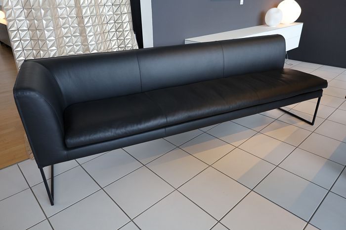 Polstergruppe (BxT): 310 x 190/95 cm, H: 66 cm, Leder 282 basalt, Fußrahmengestell P120 Pulver schwarz mit Kunststoffgleiter, Sitzkissenfüllung Visko, inkl. 3x Rückenkissen mit Rolle und 2 Kuschelkissen in Stoff 14002 hellgrau, statt 19.033,-