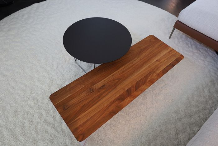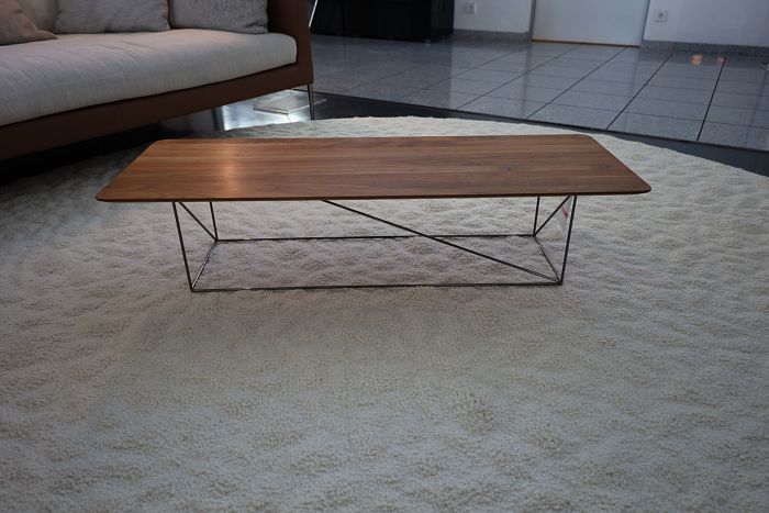 Couchtisch, (BxHxT) 113 x 26 x 40 cm, Platte Nussbaum massiv natur geölt, Gestell schwarz chrom, statt 1.959.-