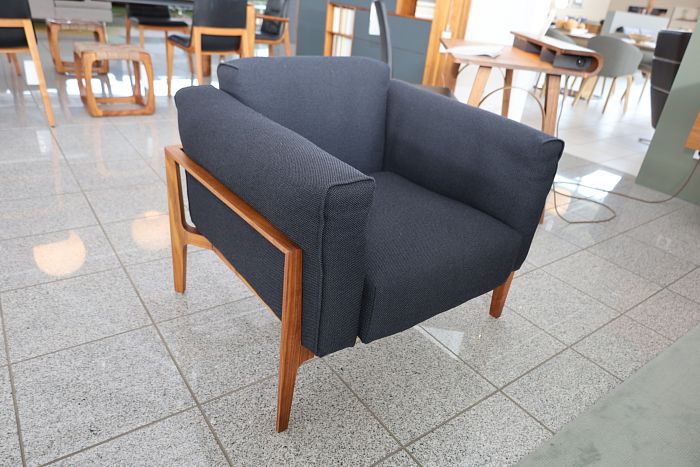 Sessel, Bezug Stoff 10070 Credo black, Nussbaum massiv natur geölt, statt 5.258,-