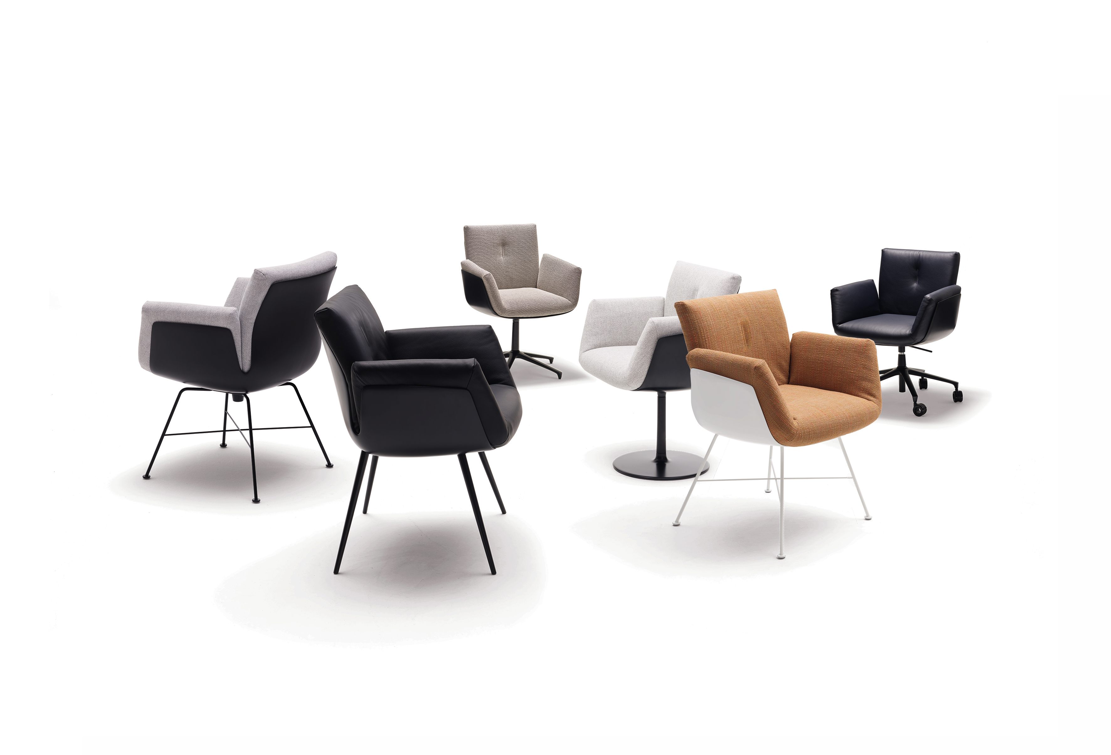 6 Armlehnstühle, mit 4-Fuß Drahtgestell P 120 schwarz mit Kunststoffgleiter, Schale K 20 Lack schwarz, Bezug Stoff 8071 salz/pfeffer, statt 7.998,-