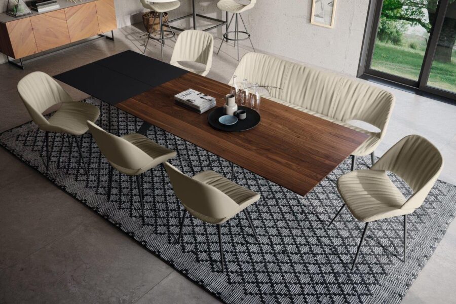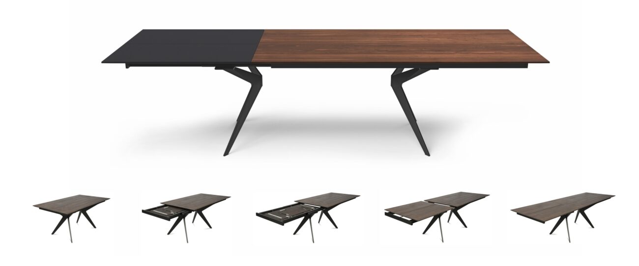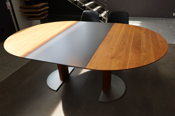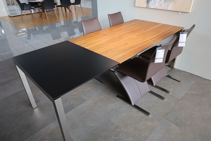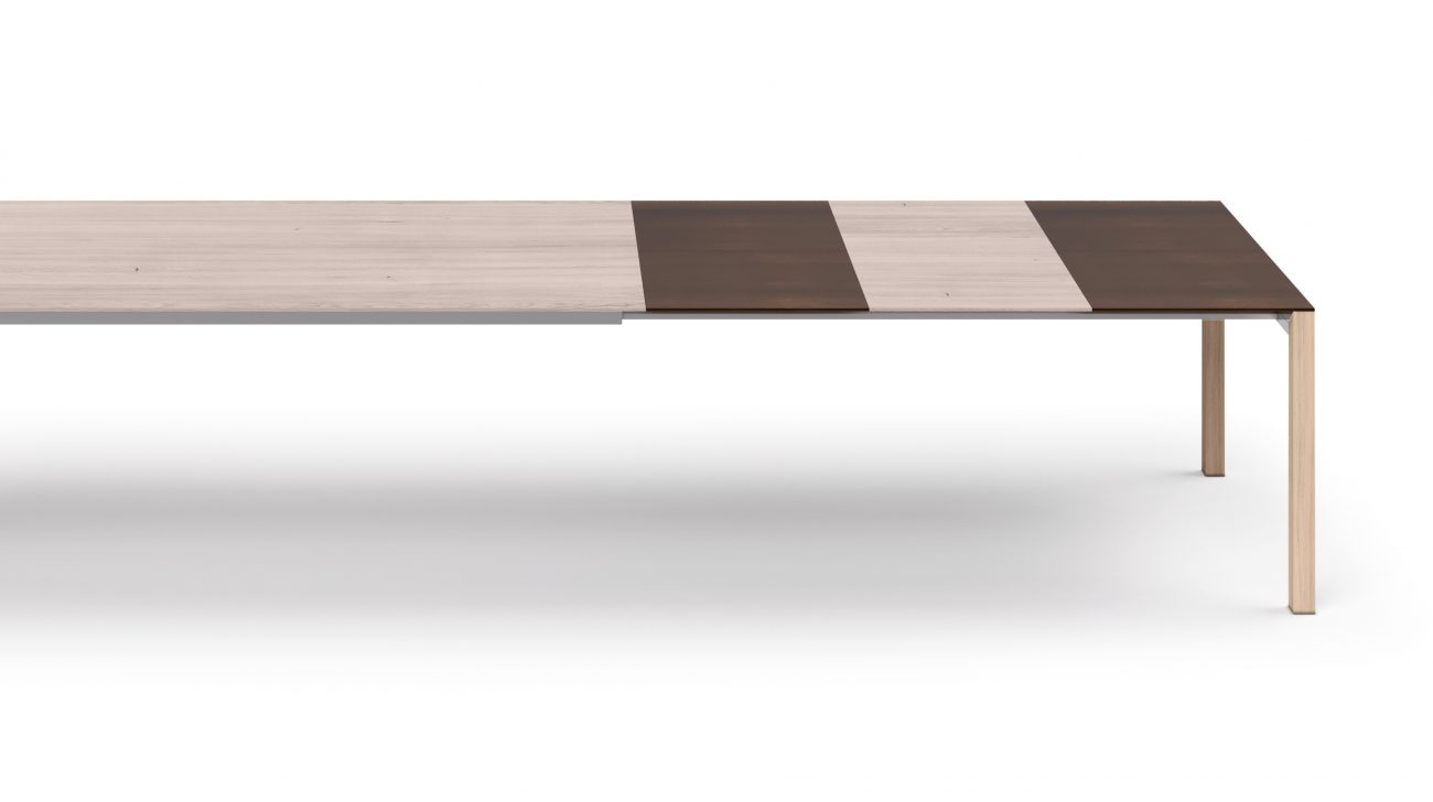 Der Auszug (Verlängerung) kann von der Oberfläche genau so wie die Tischplatte gewählt werden oder als farblicher Akzent fungieren. Es werden mehrere Größen angeboten.